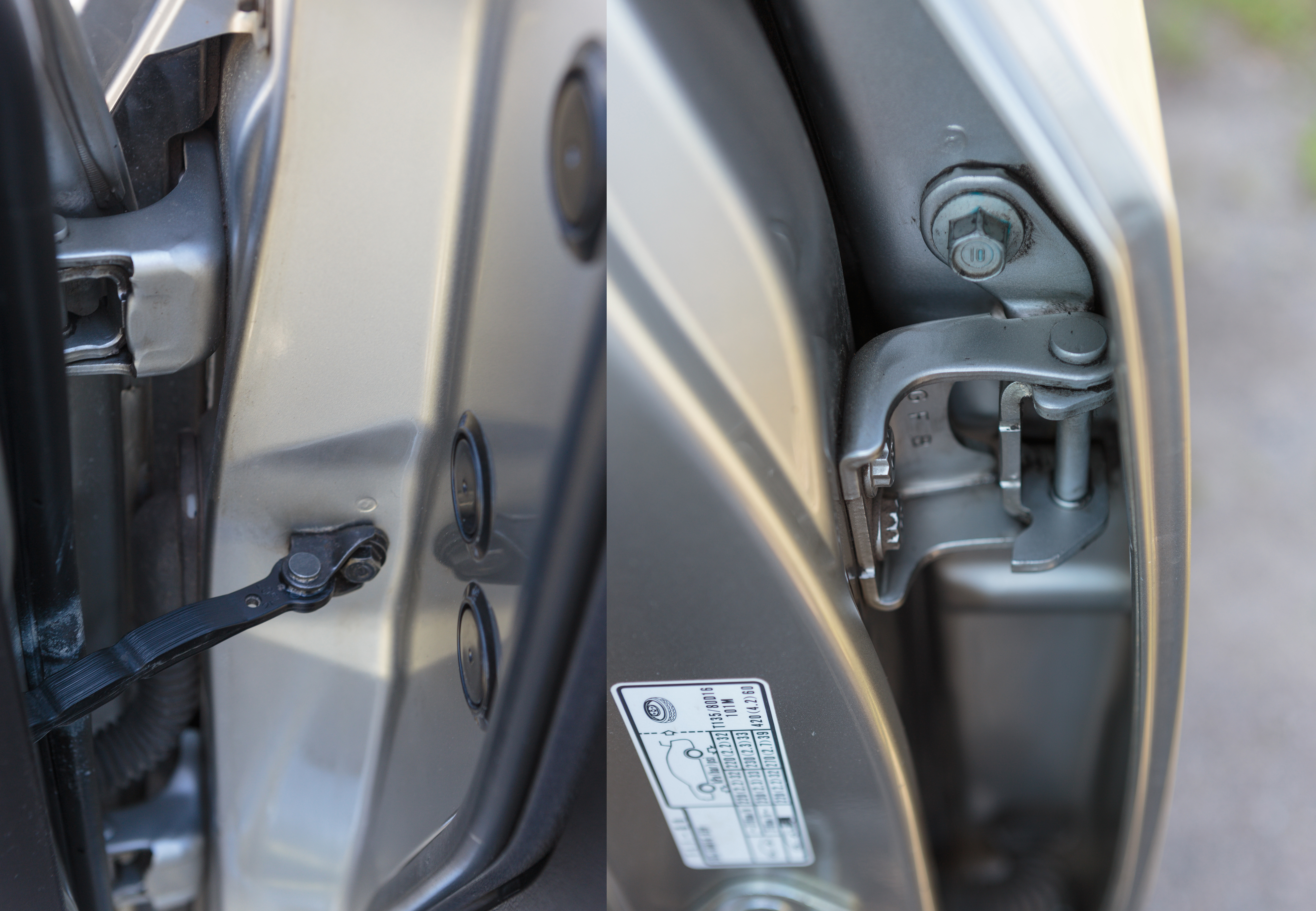 Applied to door hinges, hood and trunk locks, and the hood hinges.